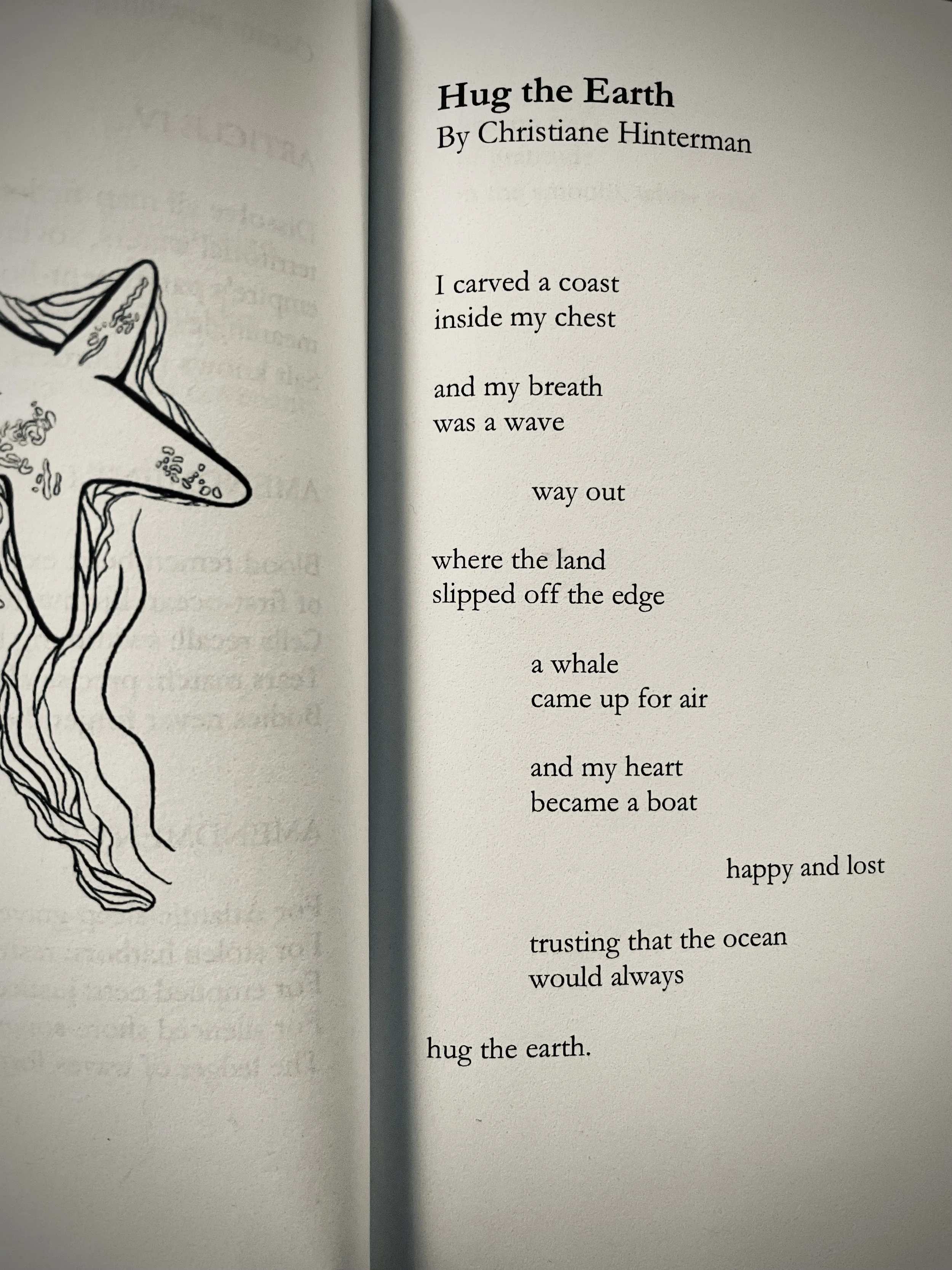 When a poem is submitted for publishing, it is often required that the poem has never been publicly shared or published prior. My hope is that this first published poem “Hug the Earth”, which was featured in Kelp Book’’s Ocean Poetry Anthology in 2025, will eventually not stand alone.